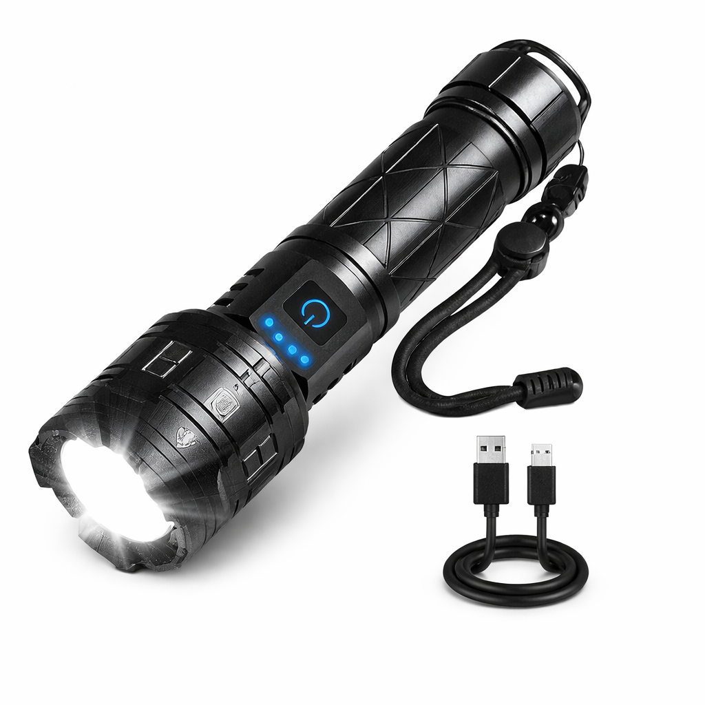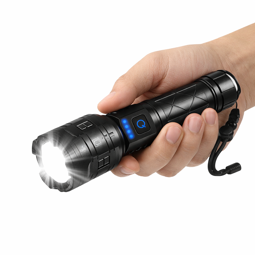 Fabricada con materiales de alta resistencia, esta linterna está diseñada para ofrecer rendimiento, durabilidad y potencia inigualable.