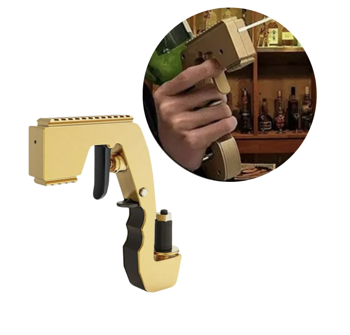 La Pistola Lanza Champagne es el accesorio perfecto para animar cualquier fiesta o evento. Divertida y original, convirtiendo cada celebración en una experiencia inolvidable. Su diseño en plástico la hace ligera y fácil de manejar, ideal para quienes buscan añadir un toque especial a sus reuniones.