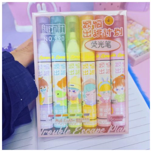 ¡Haz que cada tarea sea mágica con este Set X6 Resaltadores Trouble Escape Plan! Este kit de papelería es la elección ideal para padres que buscan un regalo de cumpleaños o "souvenir" que sea útil, colorido e impresionante para los invitados. Con diseños vibrantes, estos resaltadores no solo sirven para estudiar, sino que transforman el escritorio en un mundo de fantasía.